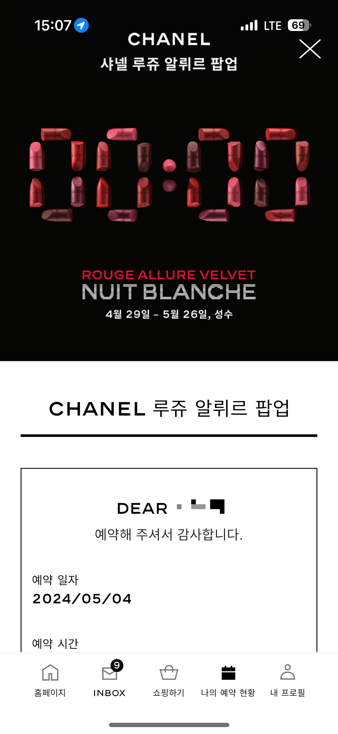 미리 샤넬 루쥬 알뤼르 팝업을 예약하고 갔습니다.