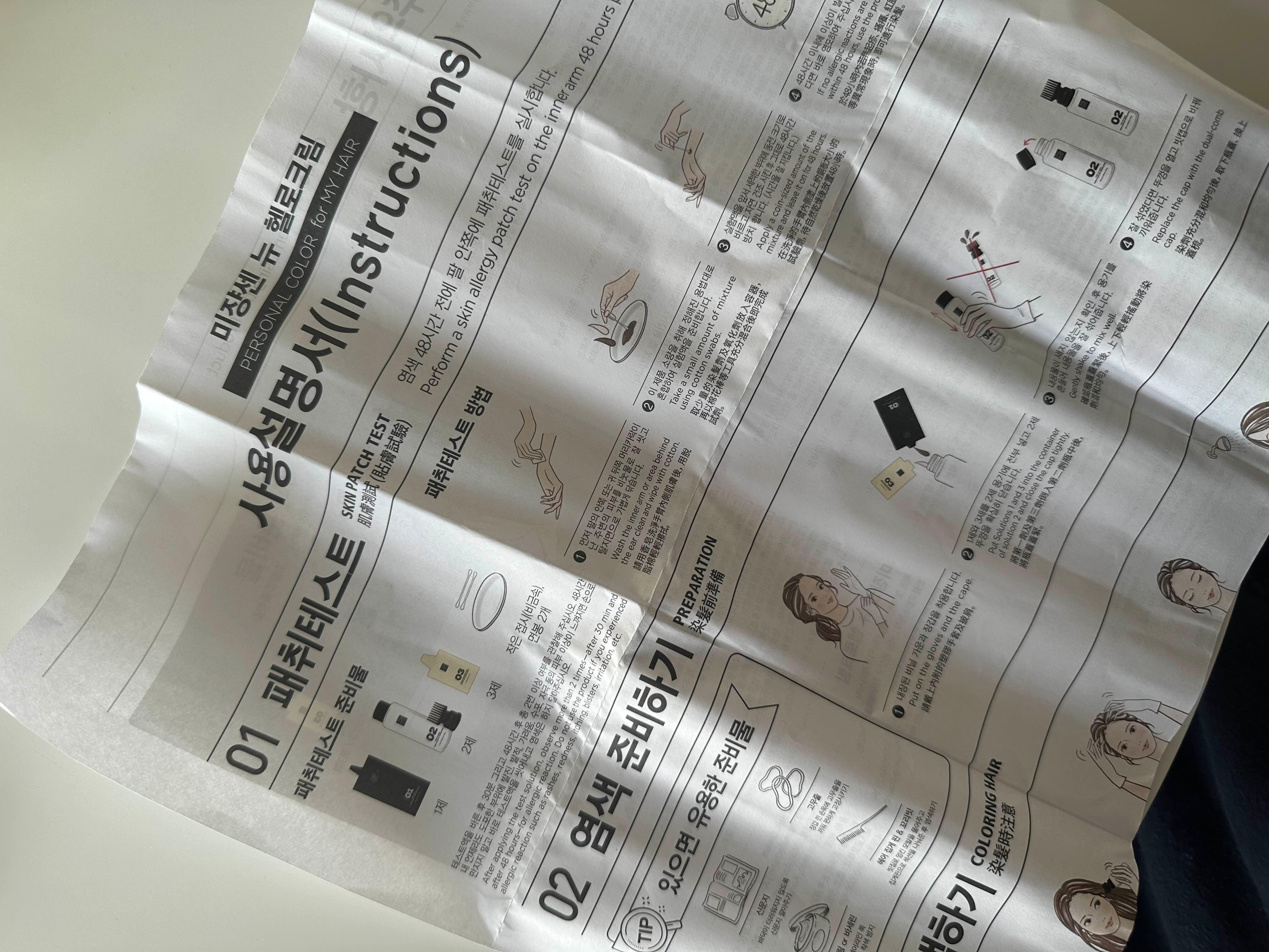 염색하기 전에 설명서 일단 꼼꼼히 읽어보기!!