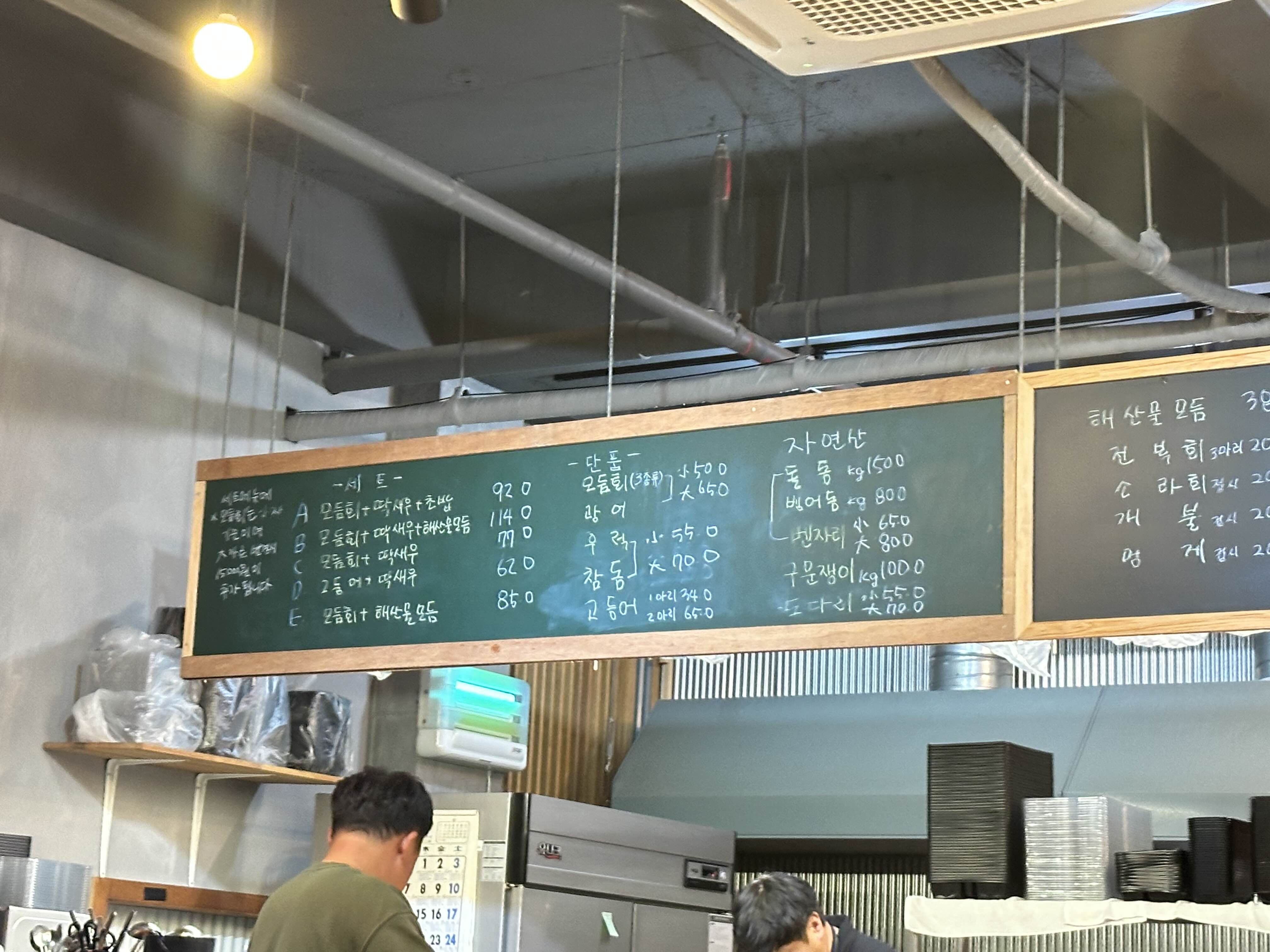 모둠회 50000원, 해물라면 8000원