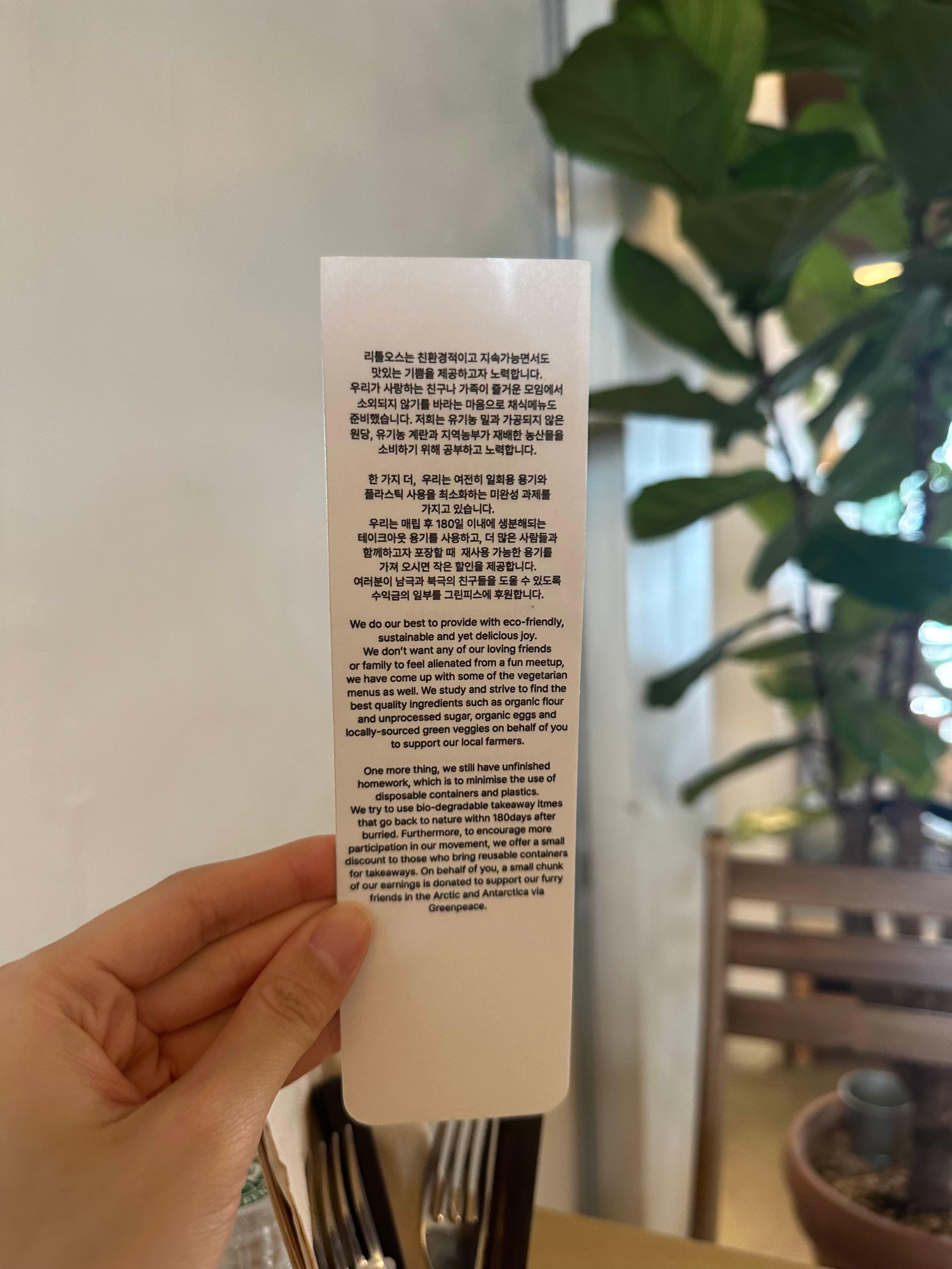 메뉴판은 영어판 하나 한글판 하나 있습니다.