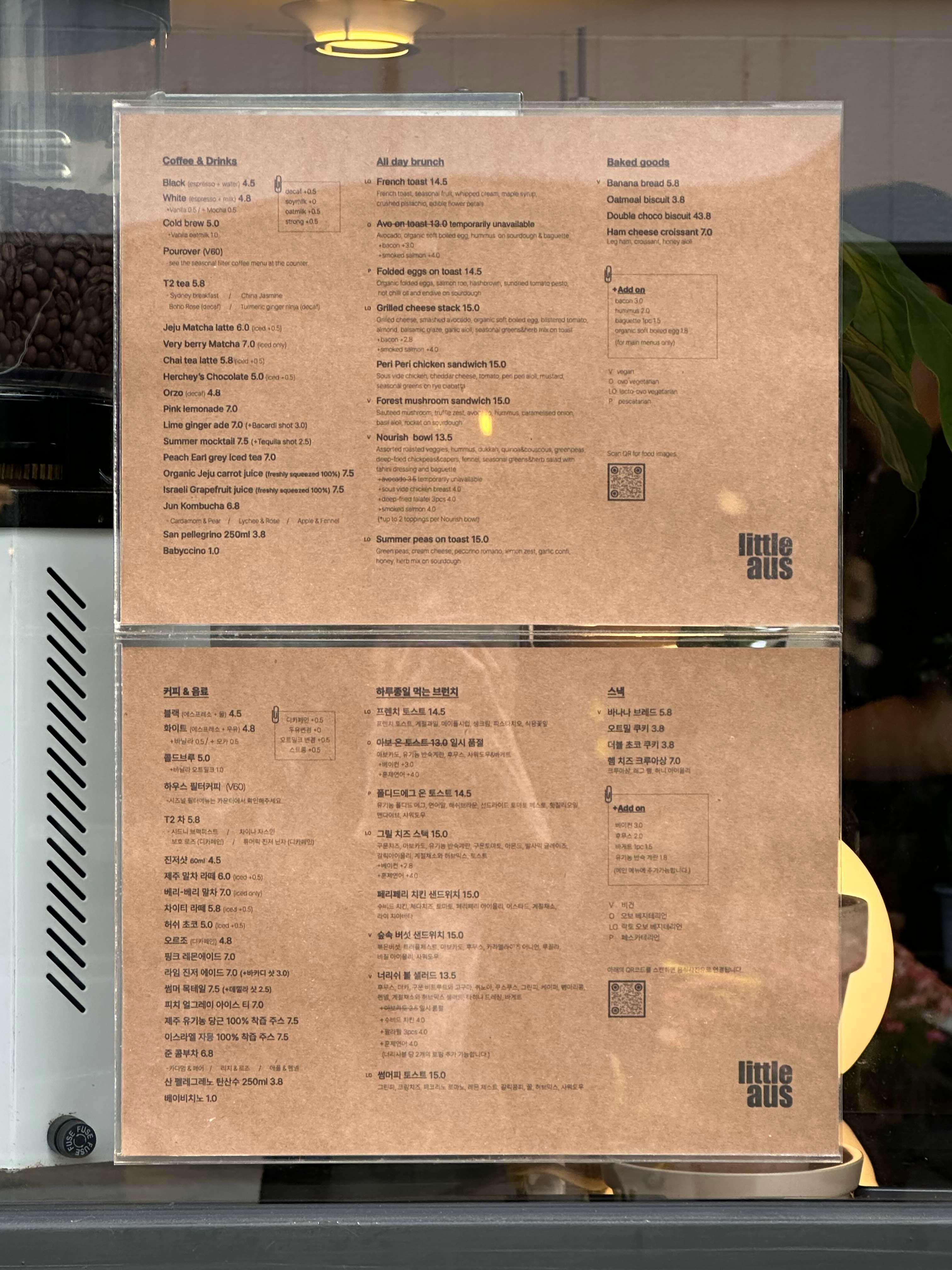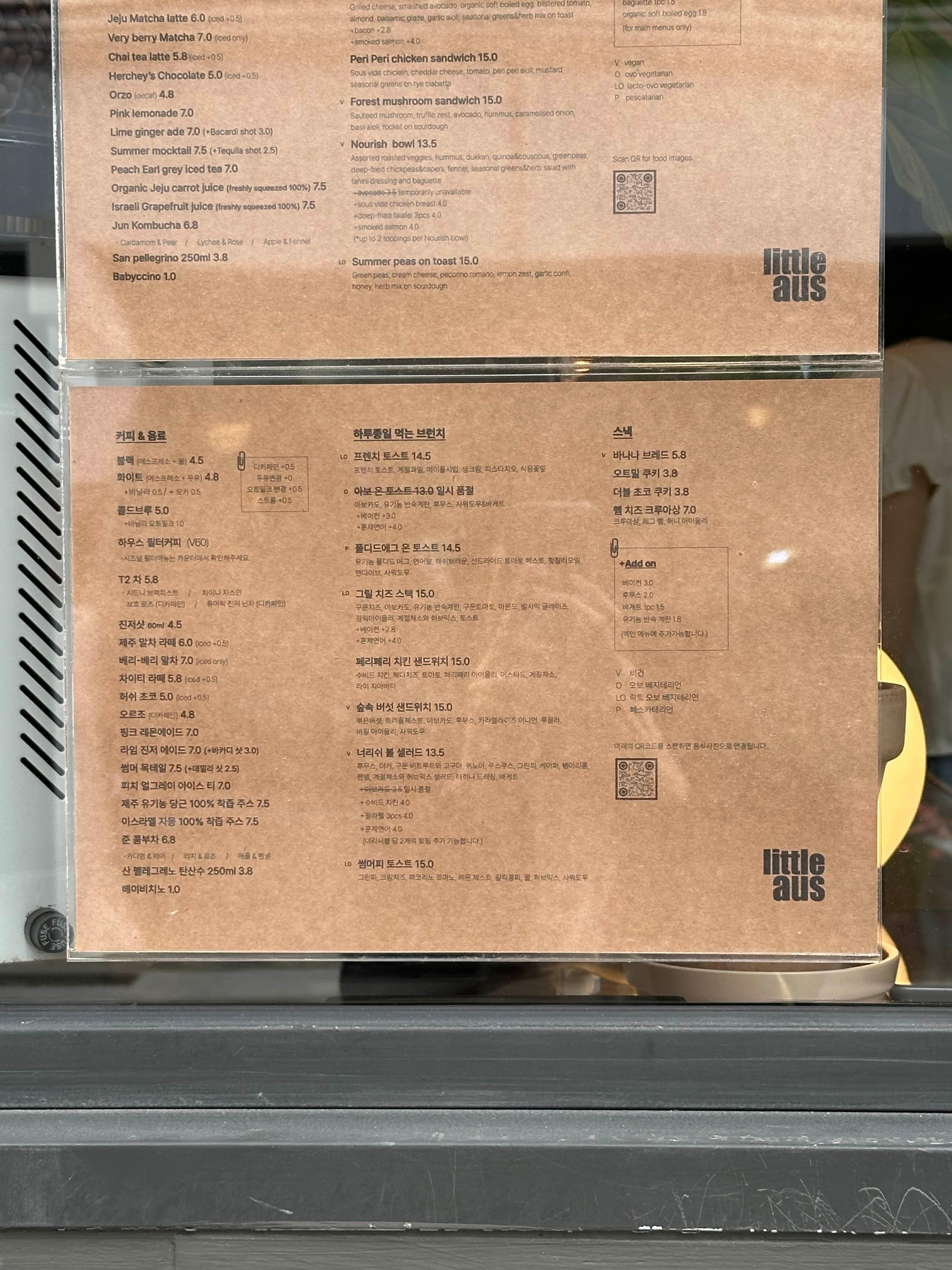 호주 느낌 낭랑해서 그런가 영문 메뉴판도 있습니다.