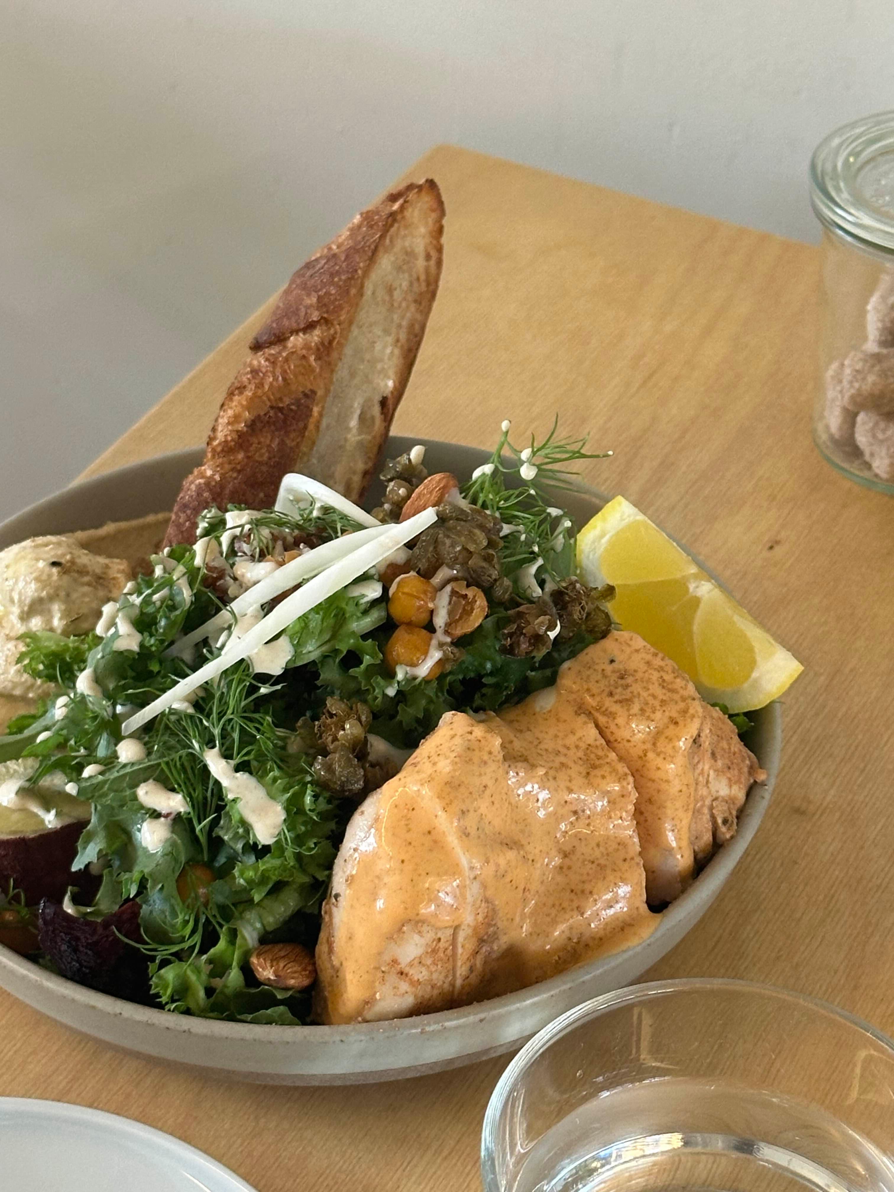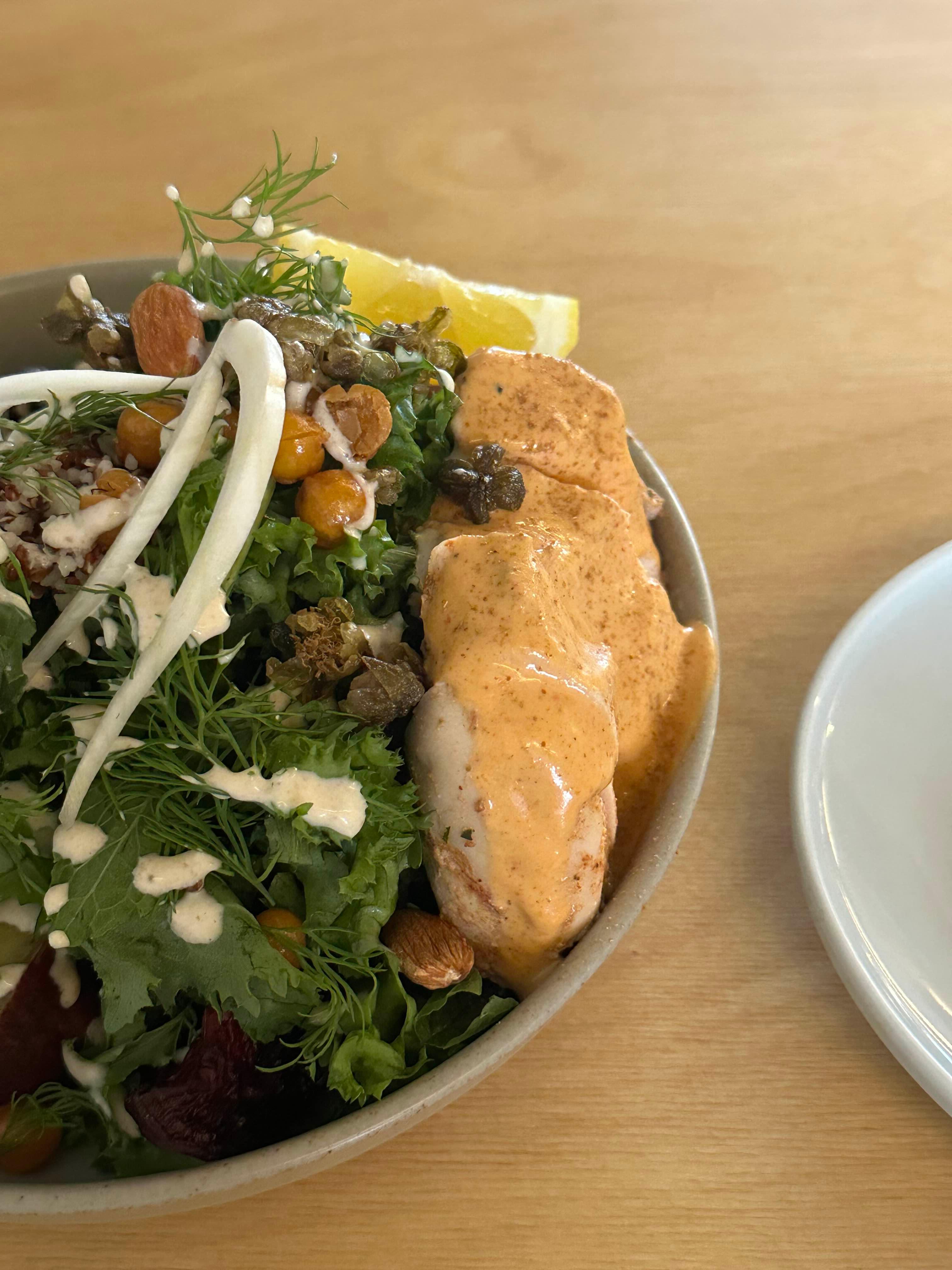 저는 너리쉬 볼 샐러드 + 수비드 치킨을 주문했습니다.