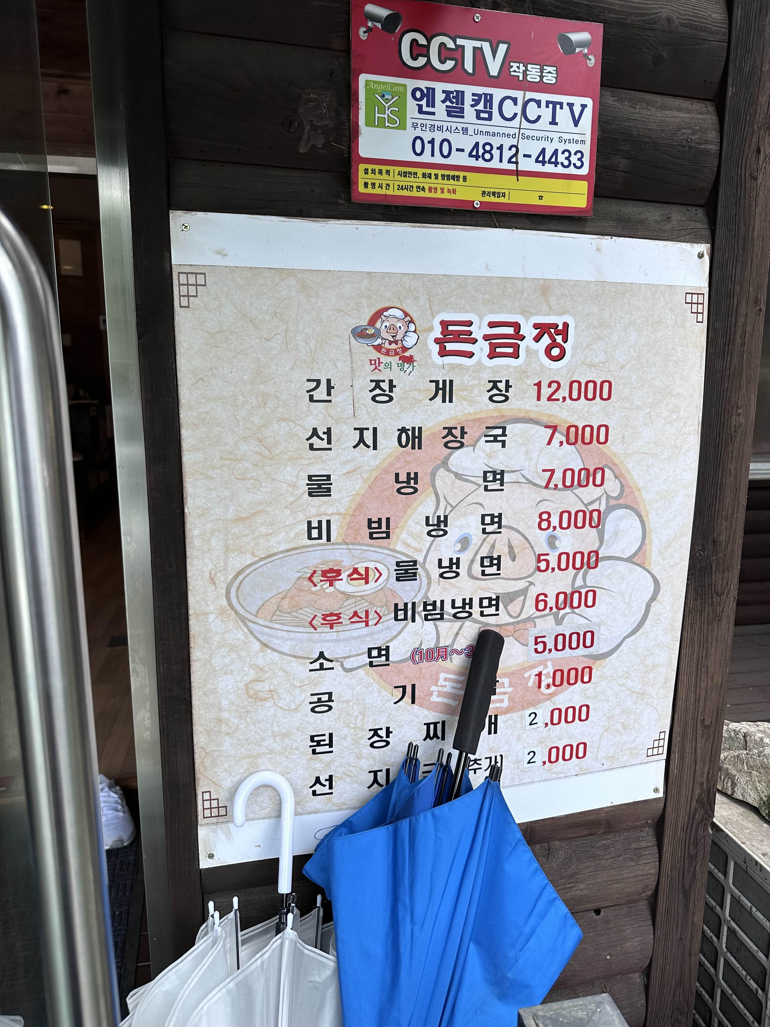 돈금정 본관 들어가는 입구에 있는 메뉴판~