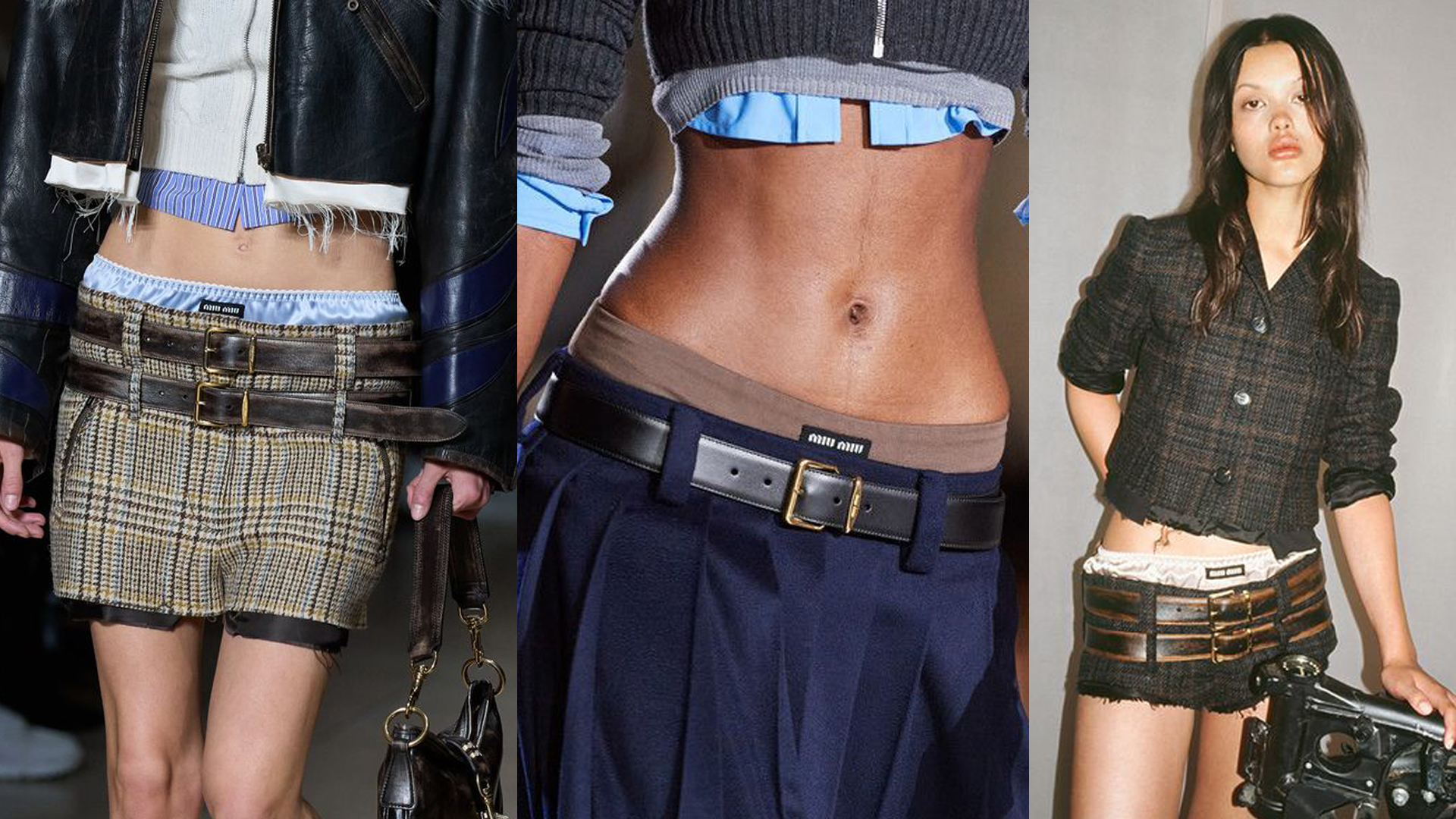 미우미우 패션쇼에서 등장한 투박한 느낌의 가죽벨트